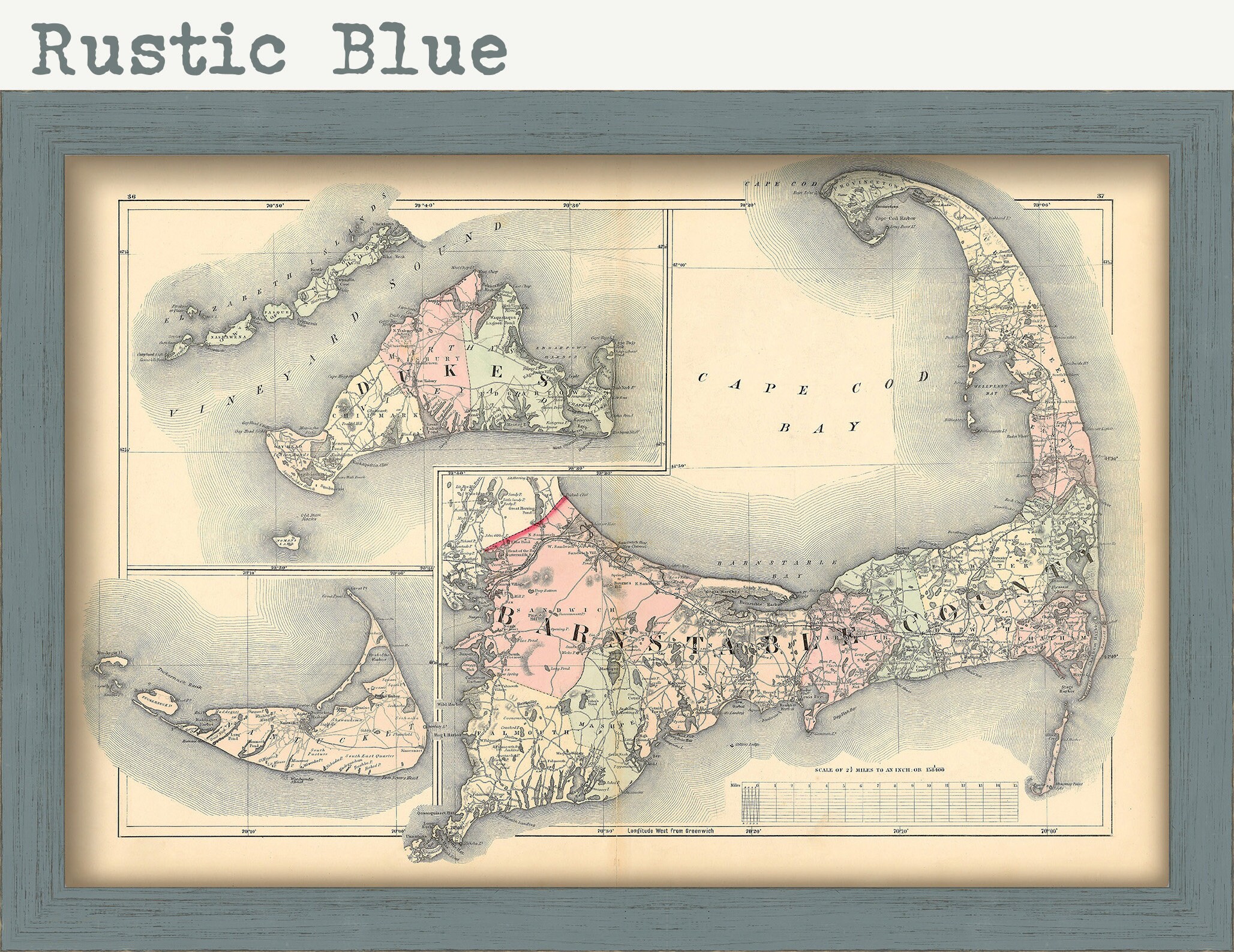 A colored map of Cape Cod and the Islands from the Atlas of Massachusetts by Walling and Gray published in 1871. This map features the entirety of Cape Cod as well as detailed views of Martha's Vineyard and Nantucket.