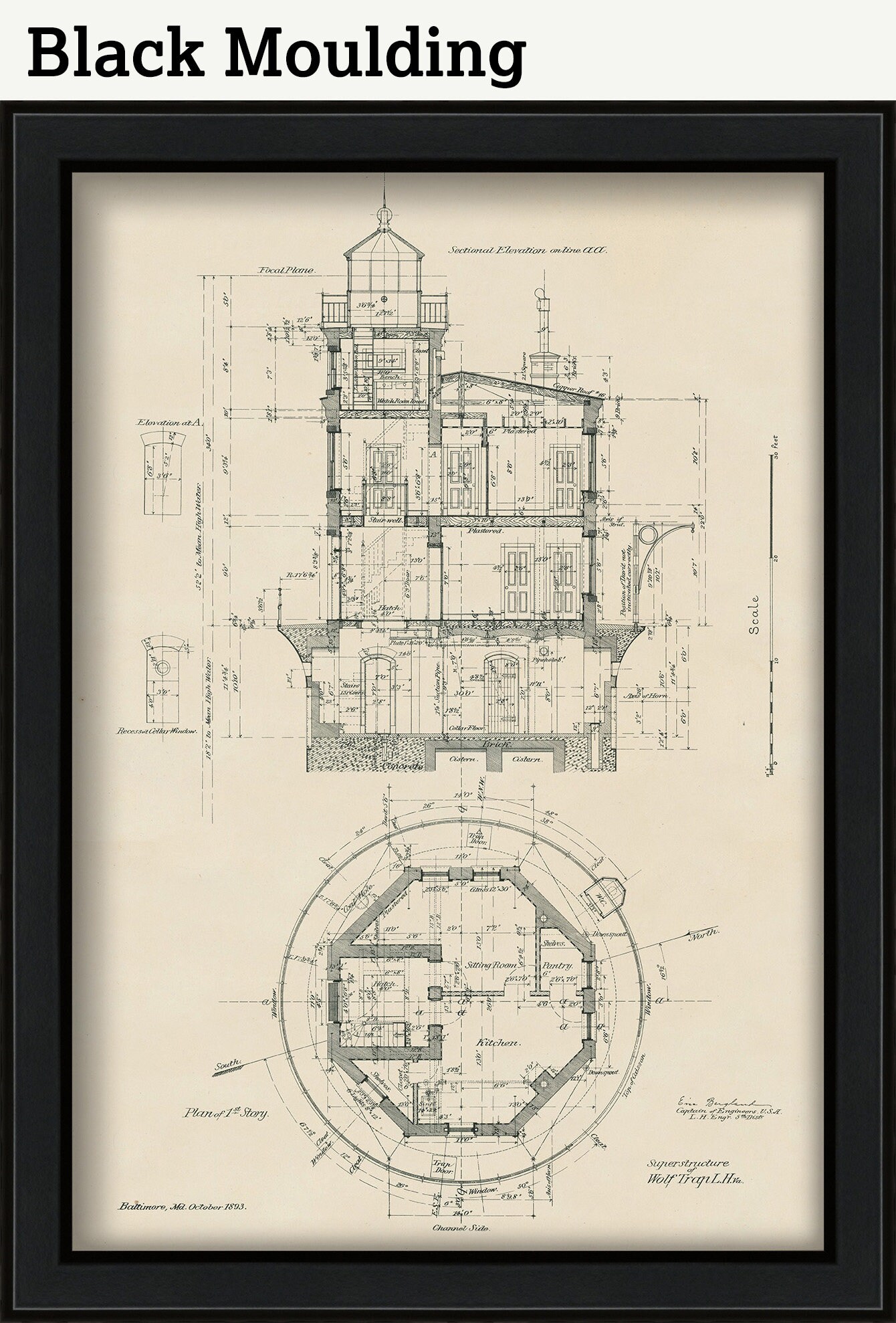 WOLF TRAP LIGHTHOUSE, Chesapeake Bay, Virginia - Drawing and Plan of the Lighthouse as it was in 1893. Wolf Trap Light is a caisson lighthouse in the Virginia portion of the Chesapeake Bay.