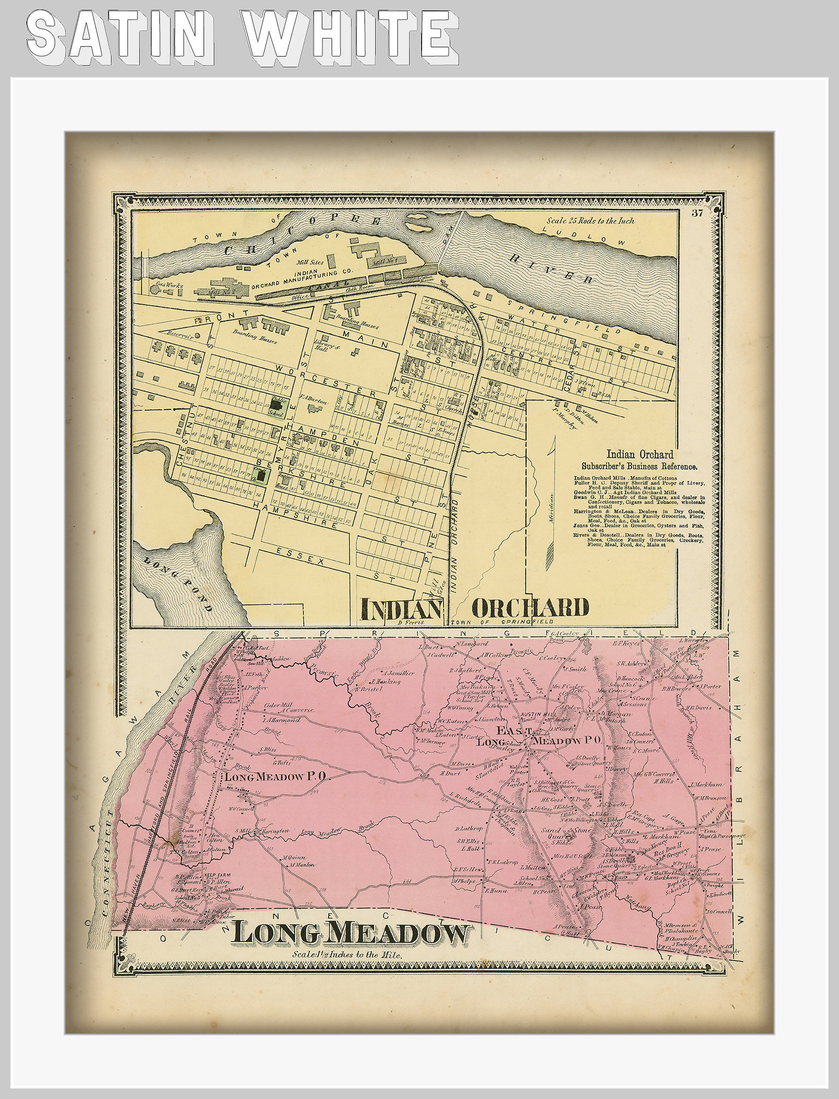 A Reproduction of a colored map of the Town of LONG MEADOW, from a Atlas of Hampden County, Massachusetts 1870.