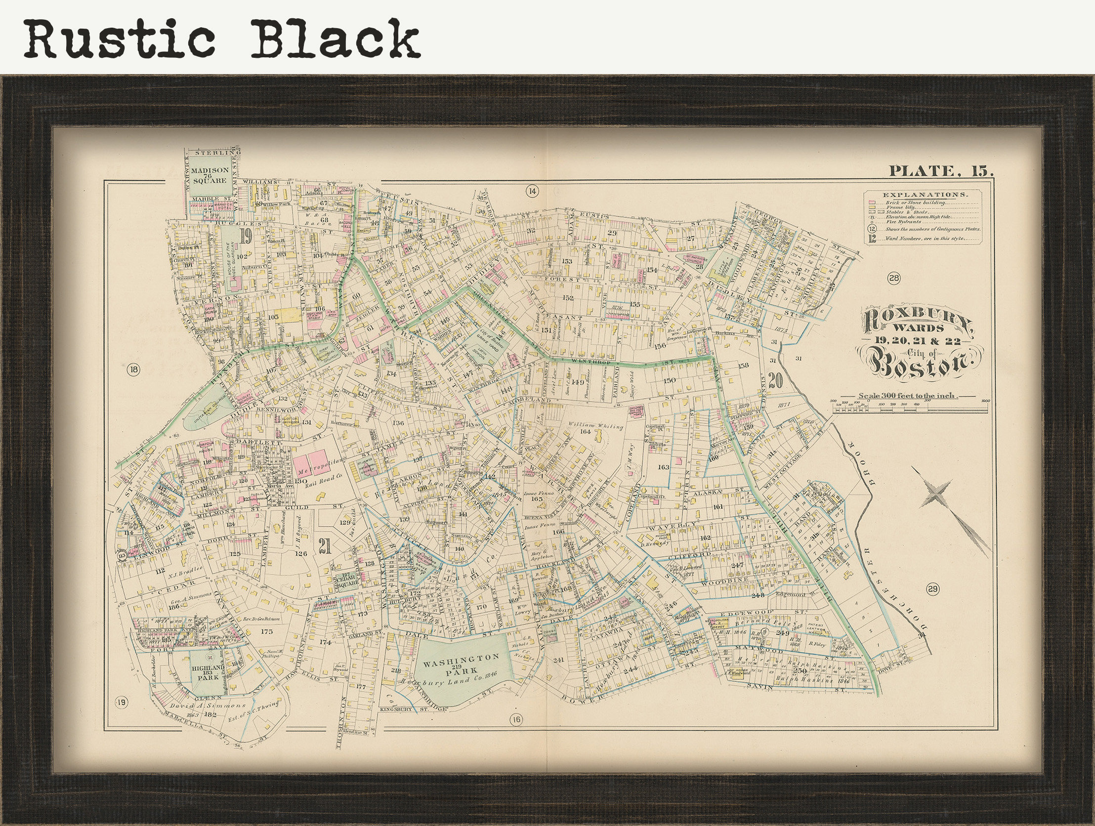 FRAMED ORIGINAL maps include: museum quality backing board, UV filtering glass, and your choice of mouldings, wired and ready to hang upon delivery.
