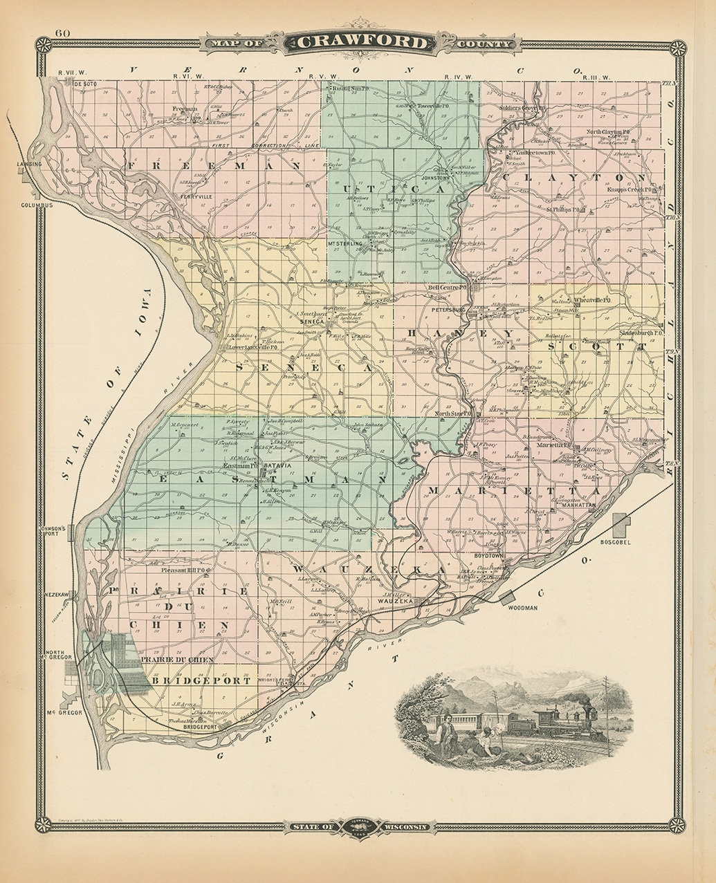 A Map of the County of CRAWFORD, Wisconsin, from a Atlas of WISCONSIN State and County Maps, published in 1878.