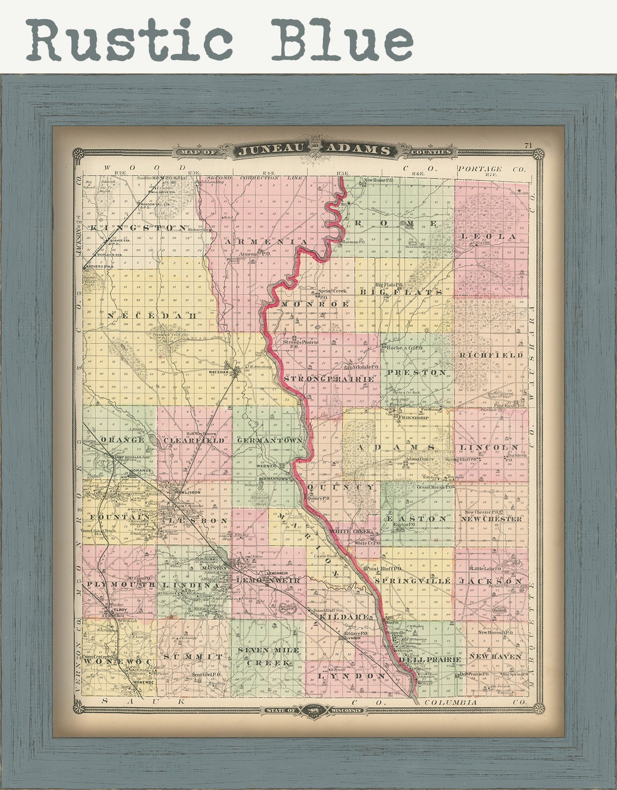 A Map of the Counties of JUNEAU and ADAMS, Wisconsin, from a Atlas of WISCONSIN State and County Maps, published in 1878.