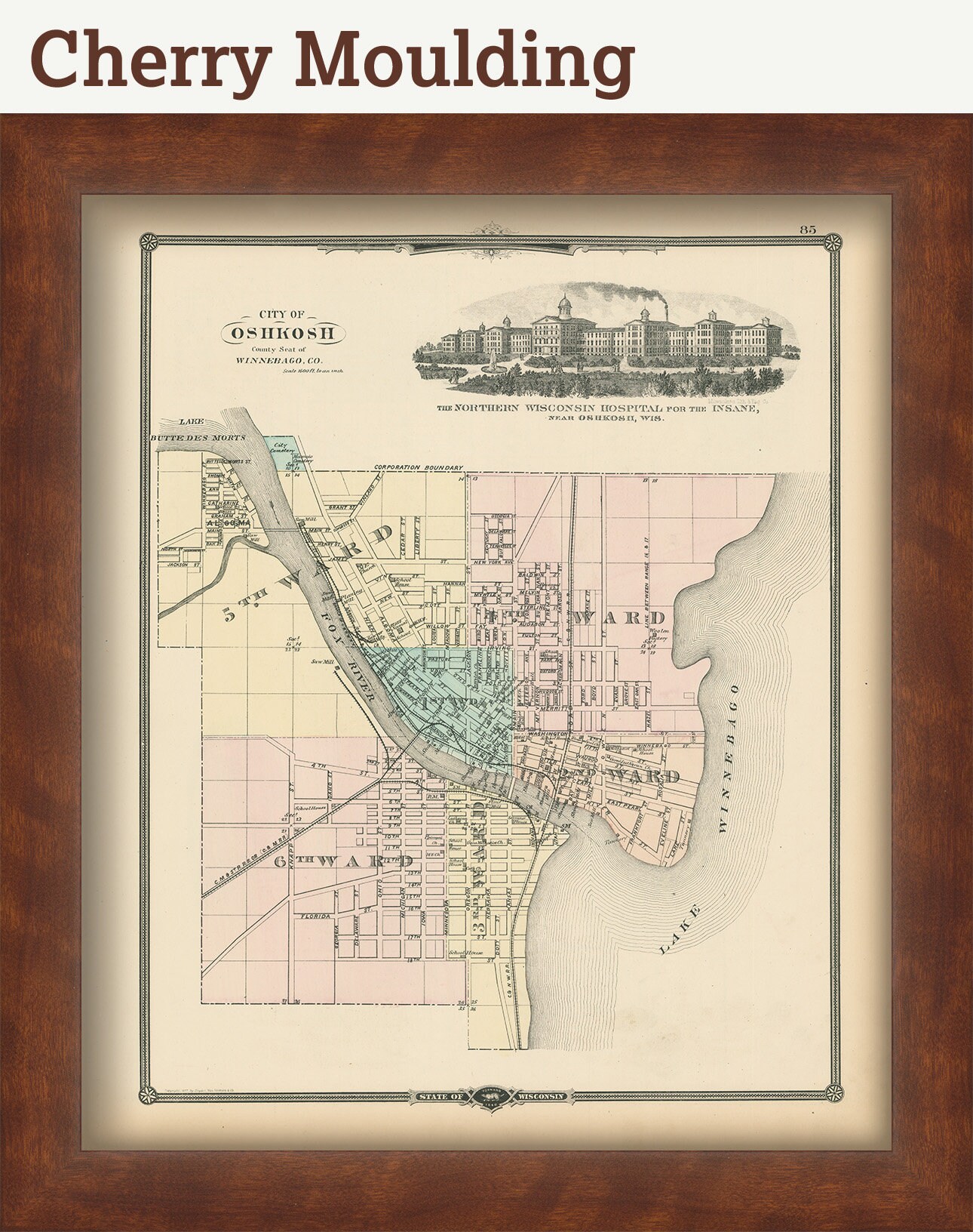 A Map of the City of OSHKOSHT, Wisconsin, from a Atlas of WISCONSIN State and County Maps, published in 1878.